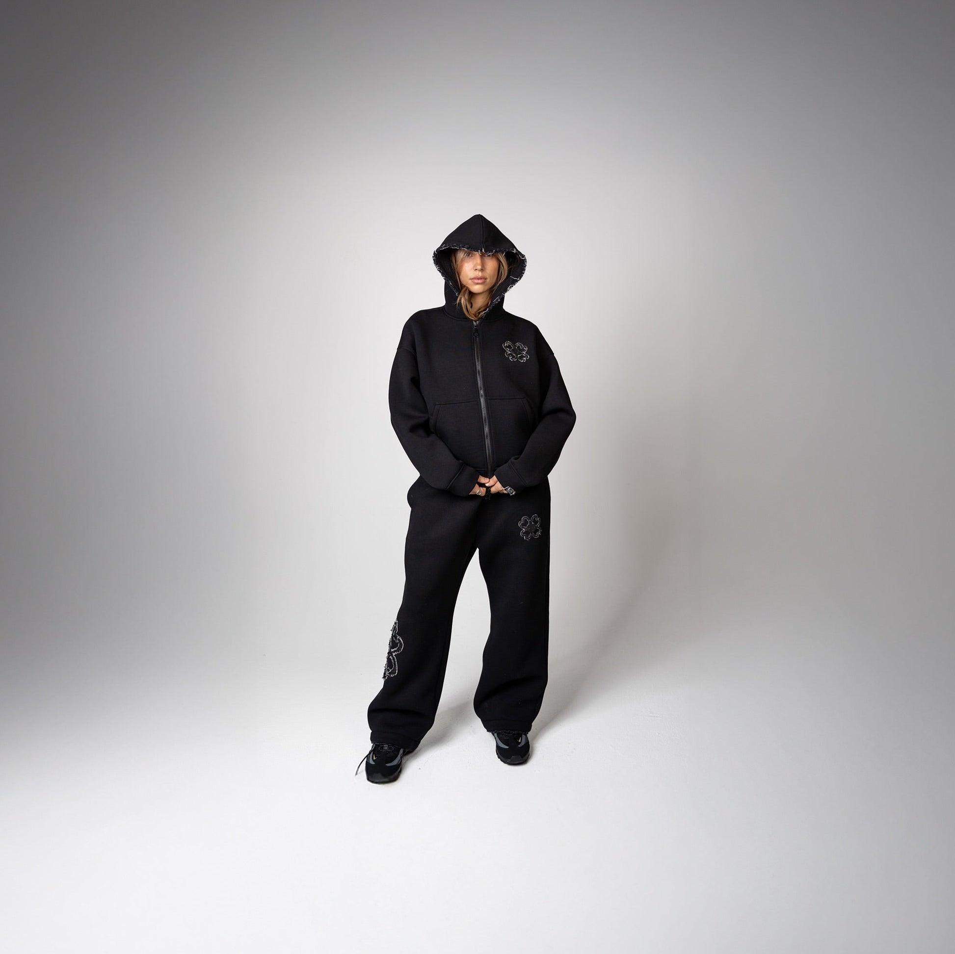 • Matière : Tissu technique premium avec un effet néoprène (380 GSM), finition lisse, structure épaisse et sensation thermique confortable.